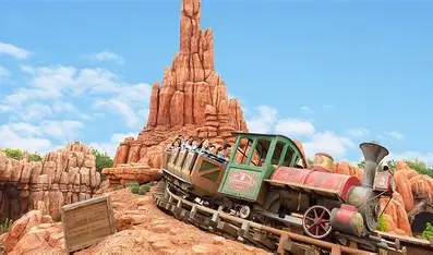 古びた金鉱を猛スピードで駆け抜ける、迫力満点のアトラクション――ビッグサンダーマウンテン。